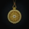 The medallion is suspended from a matching adjustable chain. As it drapes around your neck, it conjures images of a bygone era, where noble ladies and scholars alike adorned themselves with such talismanic jewels, seeking fortune and grace. Whether you’re traversing the bustling city streets, attending a glamorous soirée, or simply seeking a moment of quiet reflection, this necklace effortlessly transports you to a realm of timeless elegance, becoming a symbol of your discerning taste and an amulet of sorts, guarding your unique journey.