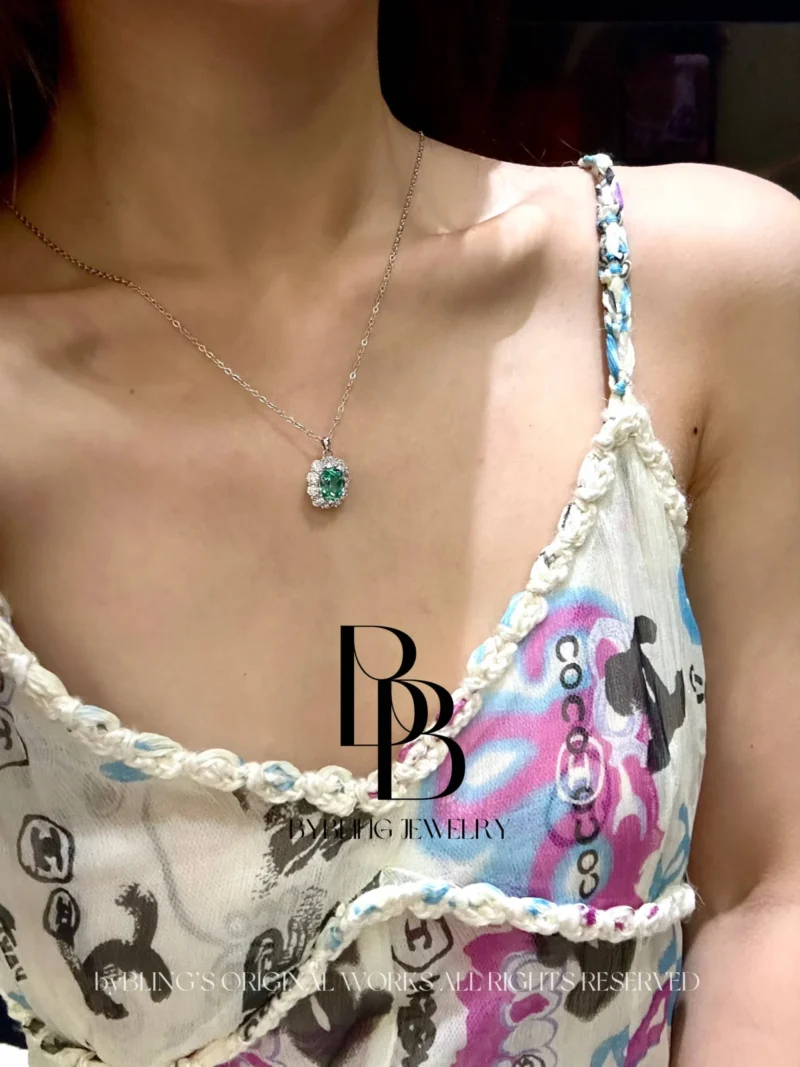 - Each pendant is crafted with meticulous attention to detail. The combination of the oval-cut green tourmaline, lab-made diamonds halo, and S925 silver setting creates a one-of-a-kind design that is both modern and timeless, making it a standout piece in any jewelry collection.