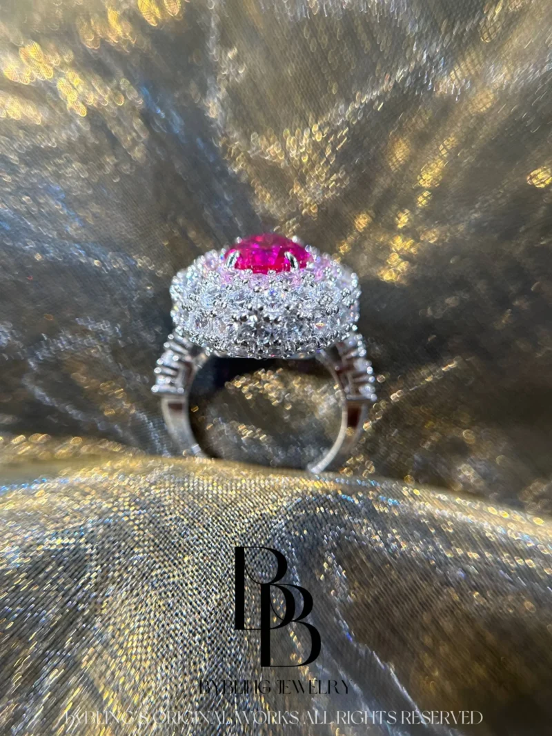 Style: Sophisticated and bold, this ring showcases the vibrant beauty of rubellite paired with the classic sparkle of diamonds. Perfect for those who love eye-catching jewelry with a modern touch.